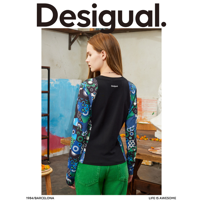 印花拼接圆领长袖 Desigual 修身 品牌 女士T恤上 西班牙时尚