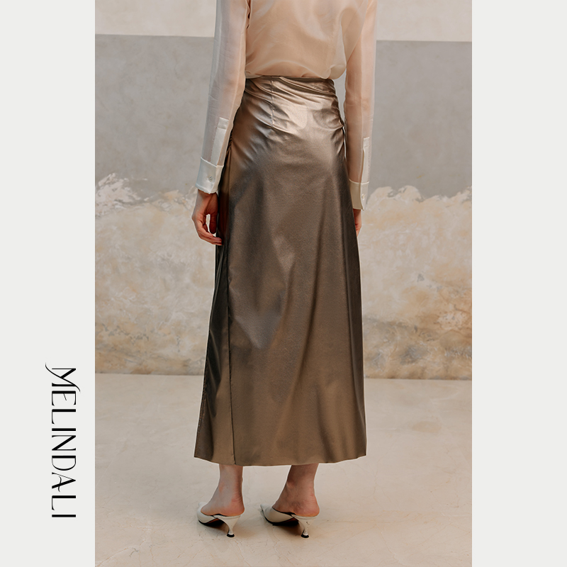 VIVICATHY2025秋不规则高级感皮裙女美拉德高腰荷叶边拼接半身裙
