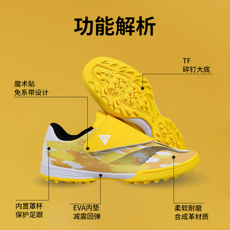 李宁儿童足球鞋 碎钉TF男孩专用魔术贴男童女孩训练小学生训练专业