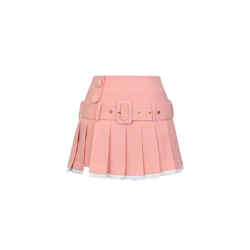 lefame拉飞姆小香风花边粗花呢撞色钉珠A型半裙