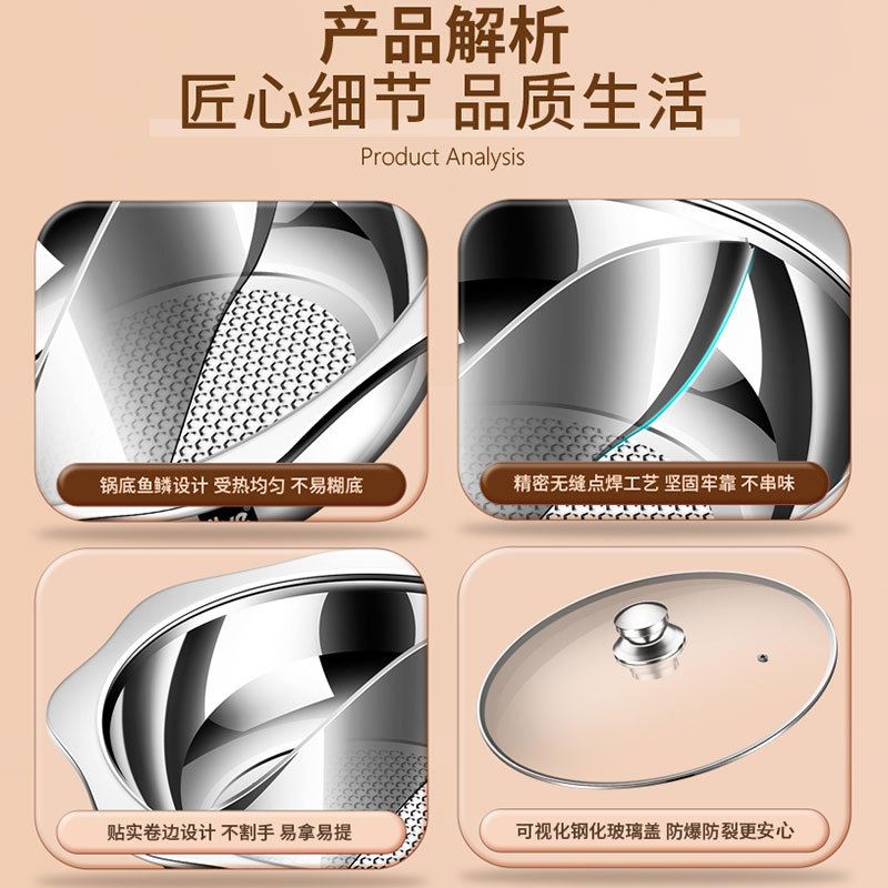 不锈钢鸳鸯锅加厚大容量太阳盆二味隔火锅专用锅一体式 火锅盆