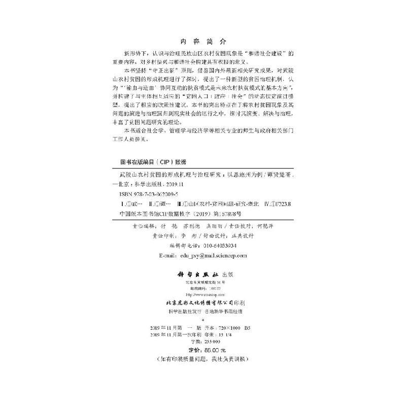 科学出版 全新正版 谭贤楚 形成机理与治理研究——以恩施州为例 社 武陵山农村贫困