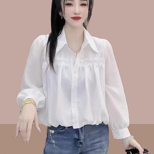 衬衫 短款 小个子上衣爆款 2025春秋季 衬衣女装 女士长袖 雪纺衫 新款