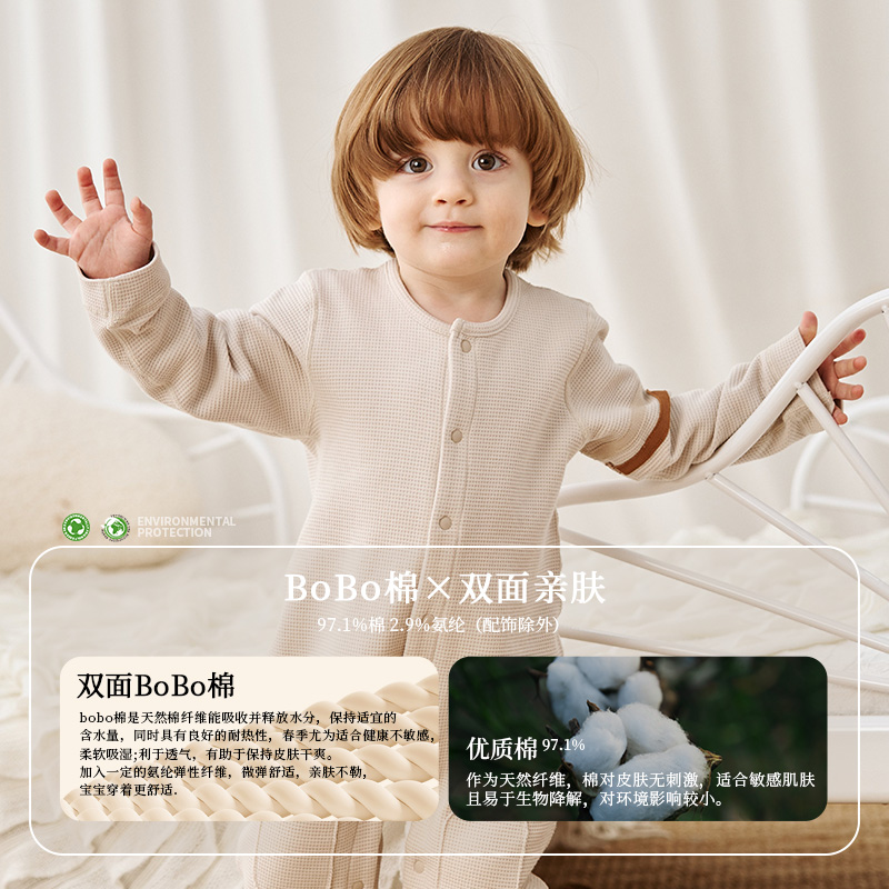modomoma新生儿衣服婴儿连体衣秋装 爬服 男宝宝外出纯棉哈衣韩版