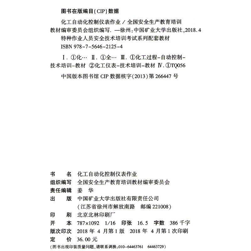 中国矿业大学出版 特种作业人员安全技术培训考试系列配套教材 社2 2018修订版 化工自动化控制仪表作业