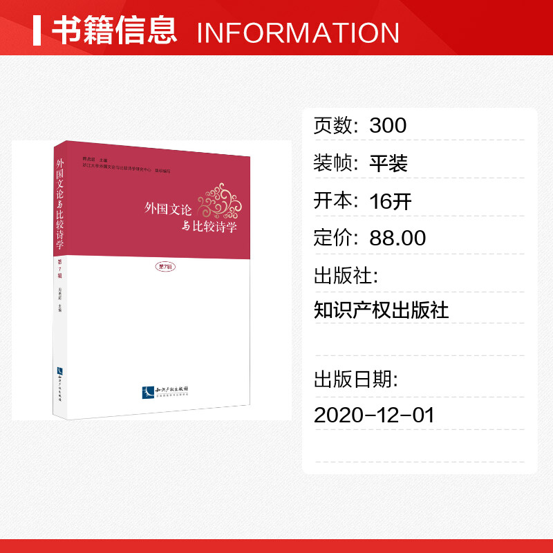 编 文学理论 知识产权出版 第7辑 社 图书籍 周启超 新华书店正版 外国文论与比较诗学 文学评论与研究文学