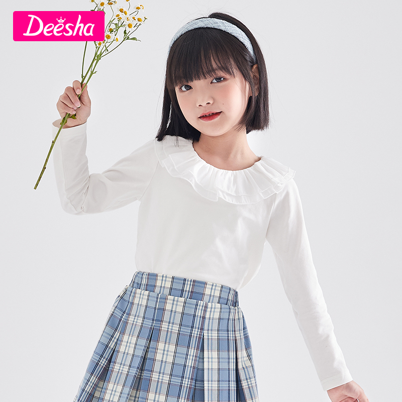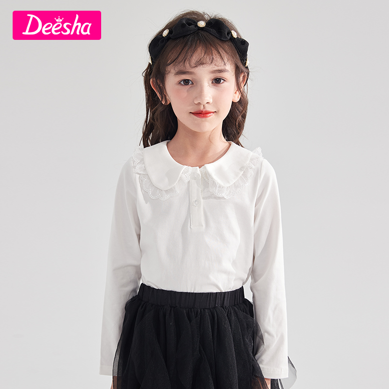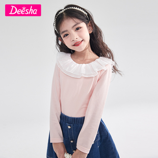 薄迪莎 中大童儿童体恤宝宝打底衫 笛莎旗舰店女童长袖 T恤春秋新款