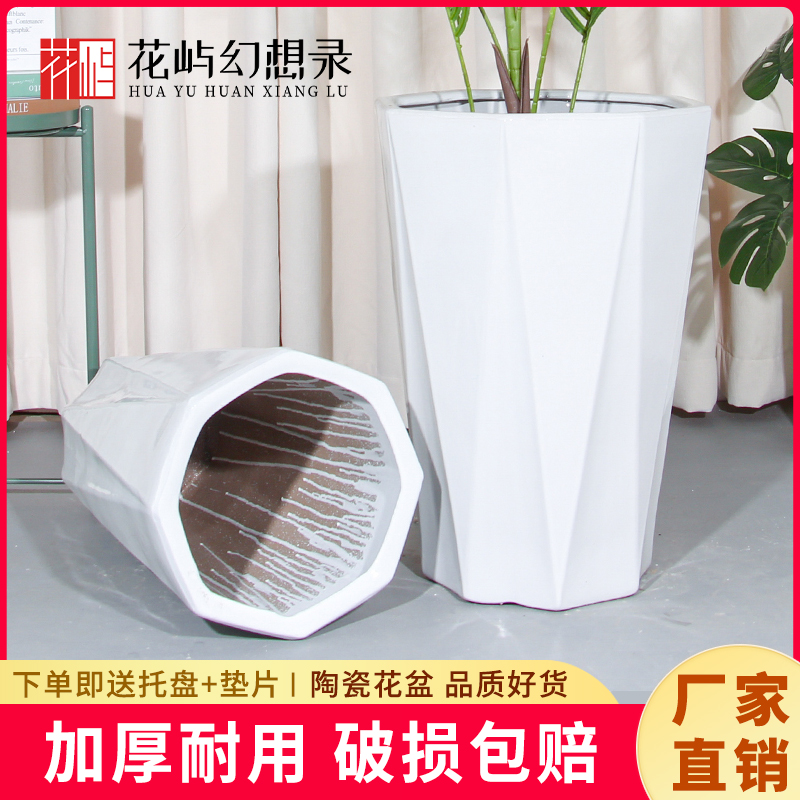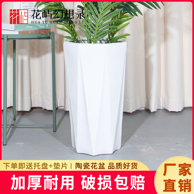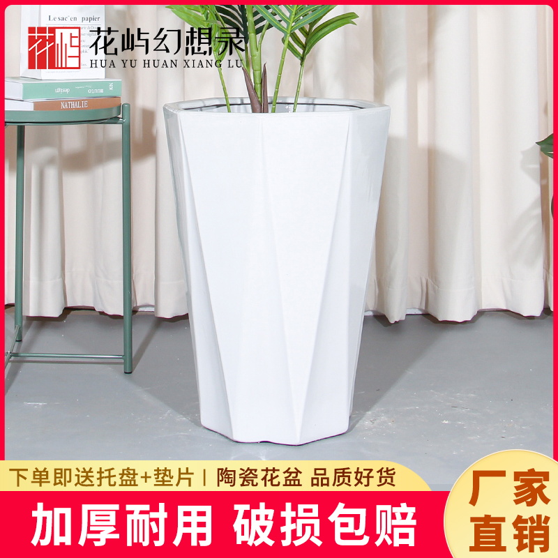 现代简约百搭陶瓷大花盆高度50以上纯白家用客厅轻奢种树绿植通用