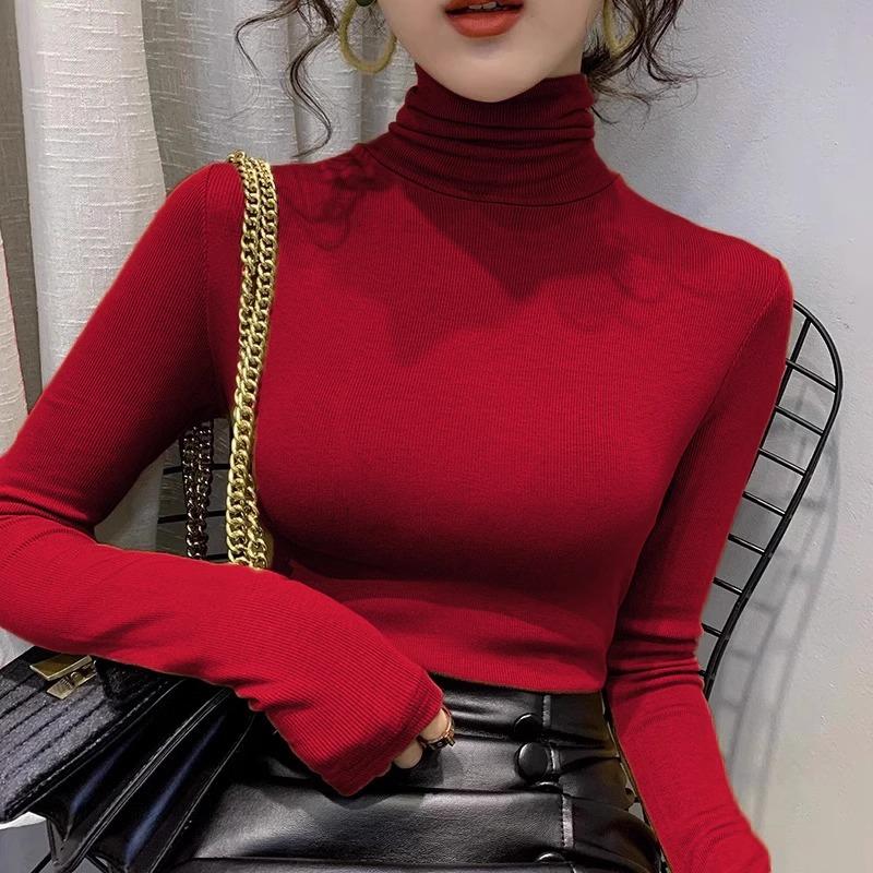 上衣加厚一体绒保暖白色毛衣女 打底针织衫 秋冬半高领修身 紧身长袖
