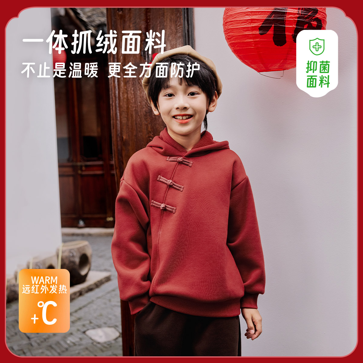 男女童新中式 拜年新款 上衣红色潮 童装 EBAER儿童加绒卫衣2025冬装