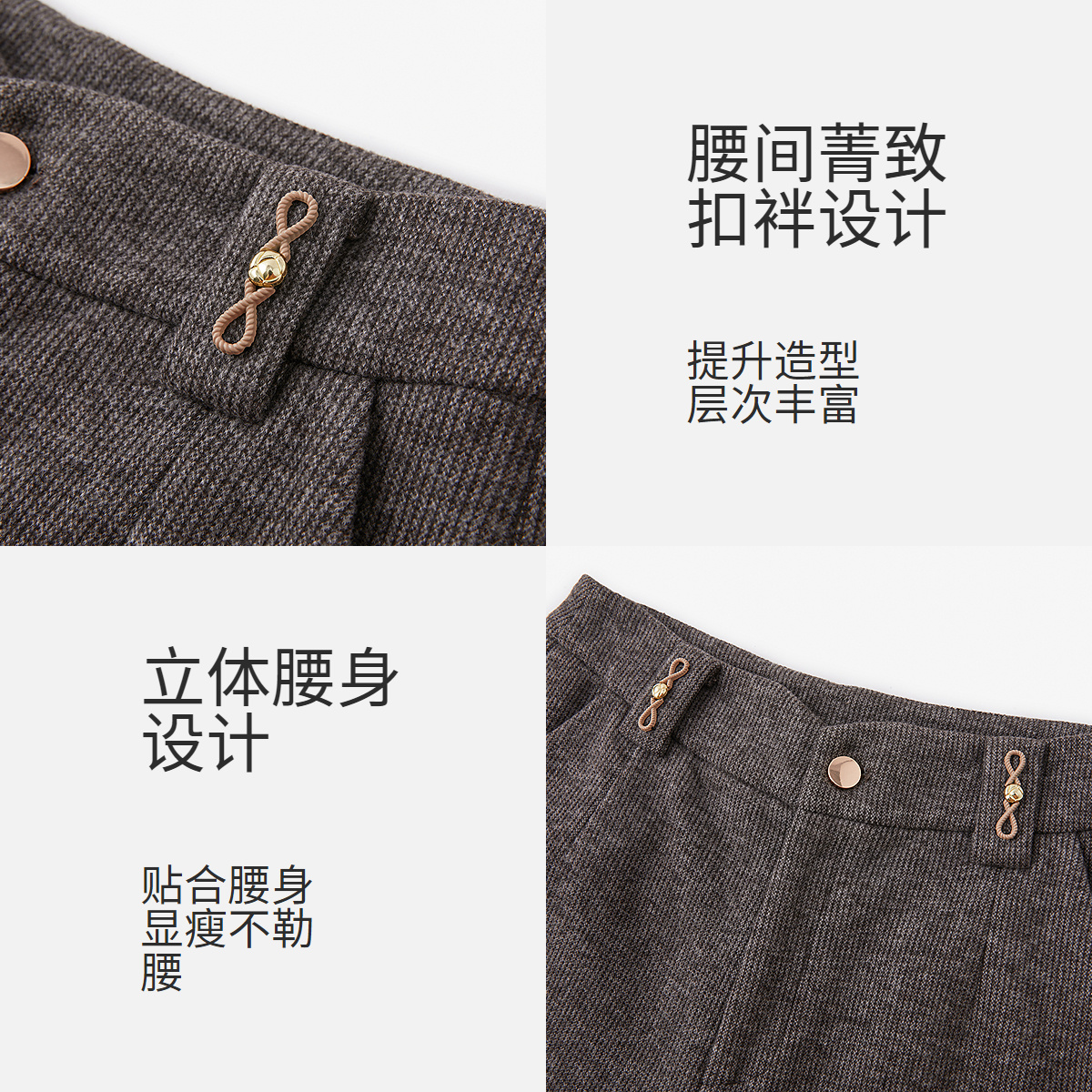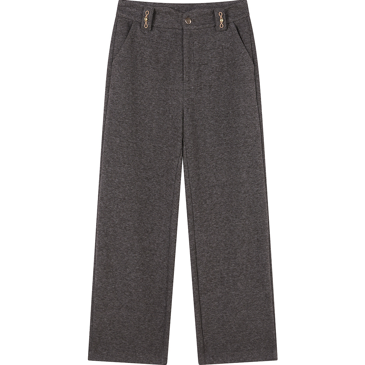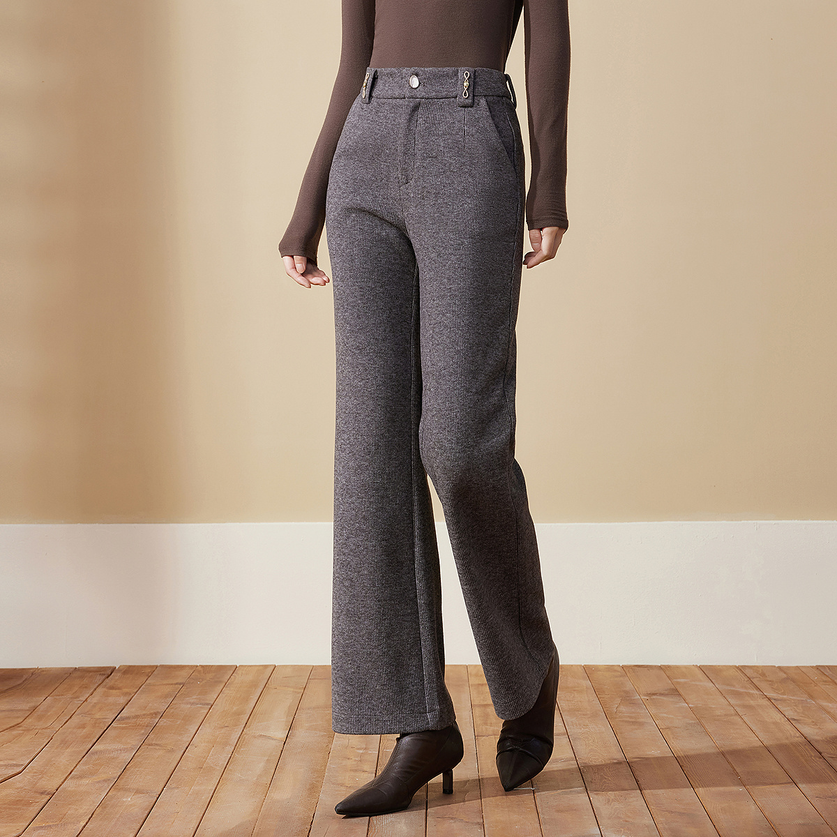 高腰直筒长西裤 新款 女2024年冬季 FINITY菲妮迪针织呢花灰色休闲裤
