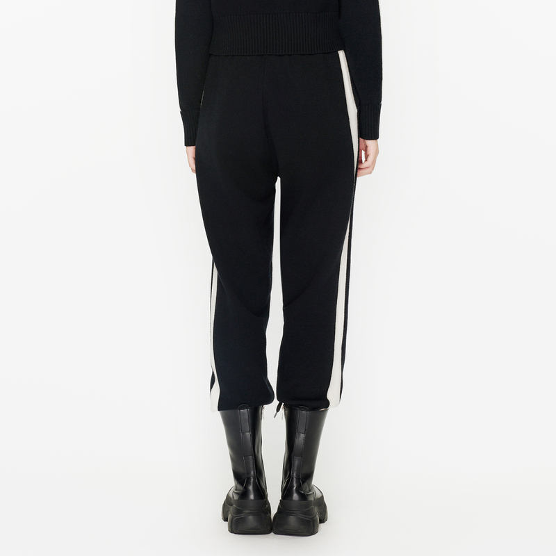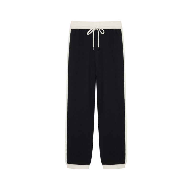 冬季 飘蕾黑色宽松休闲裤 保暖加厚撞色显瘦毛织长裤 清仓直降