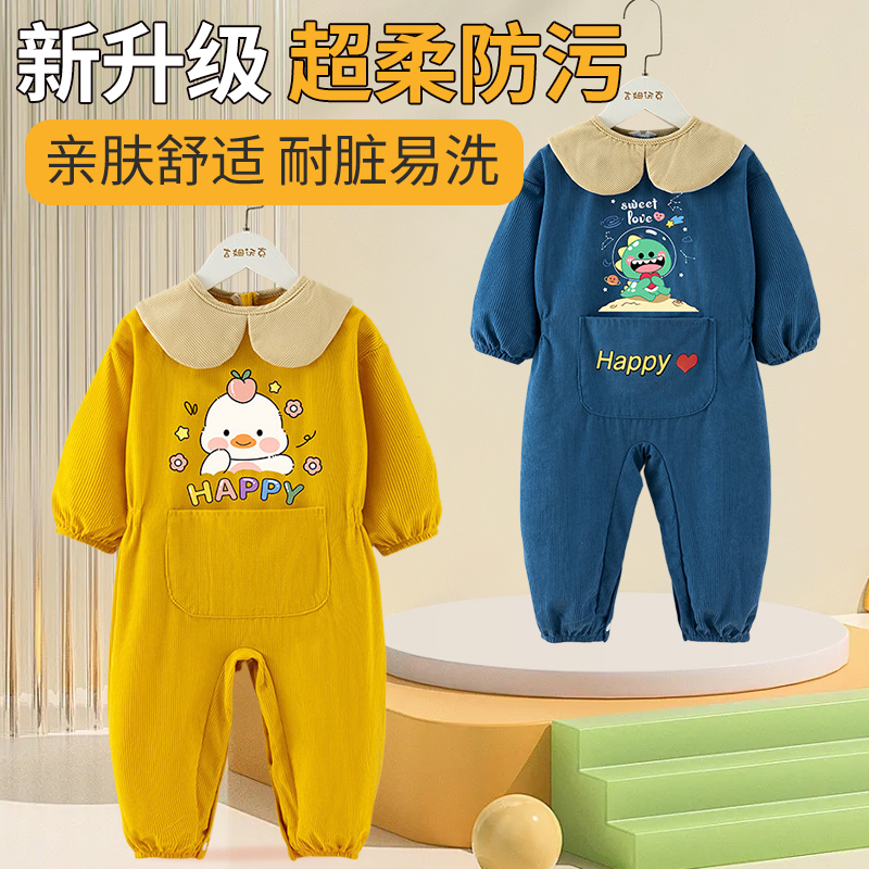 儿童罩衣女宝宝连体爬行爬爬服防脏护衣秋冬外穿婴儿冬季 全身防水