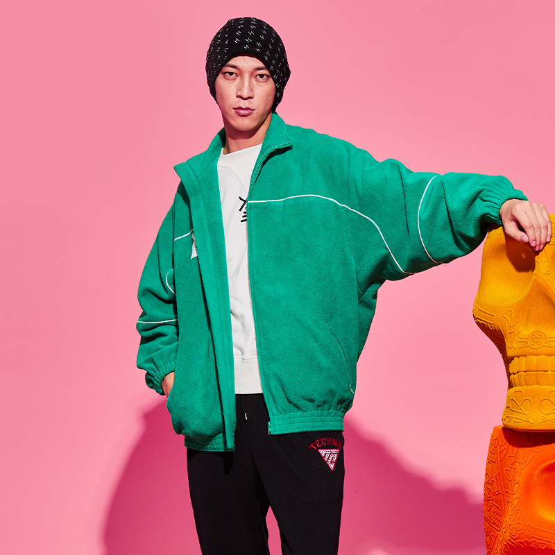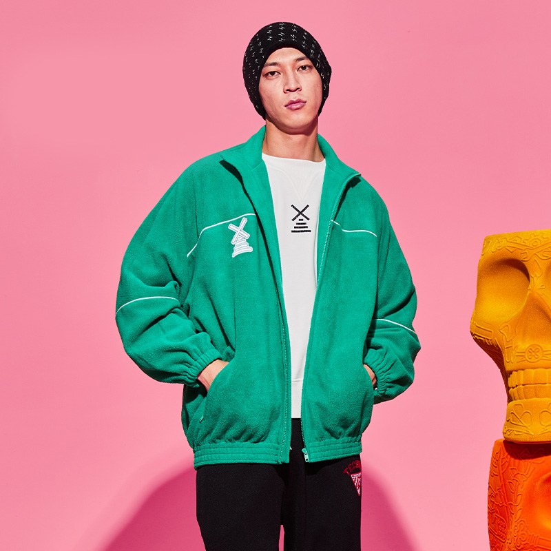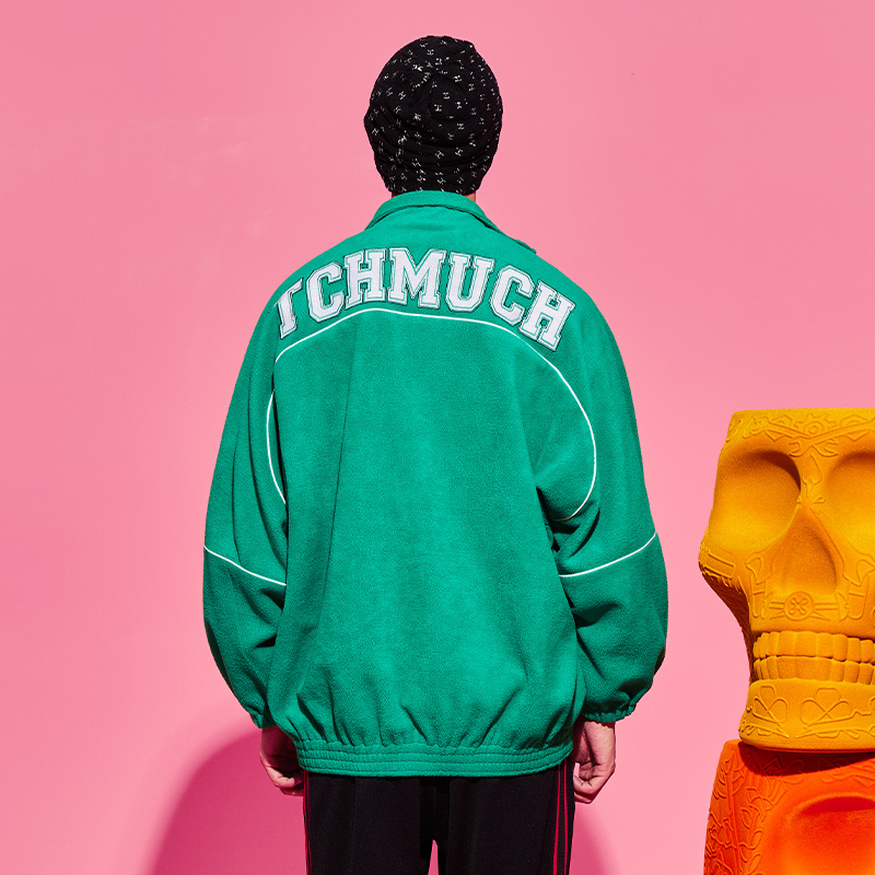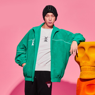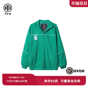 TCH潮牌休闲时尚 外套S69D276023 宽松颗粒绒绿色烫钻拉链长袖