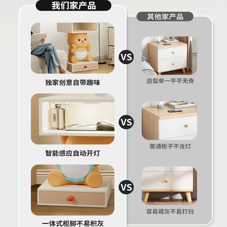 卧室床头柜日式 收纳柜 多层置物架家用客厅零食玩具储物柜子抽屉式