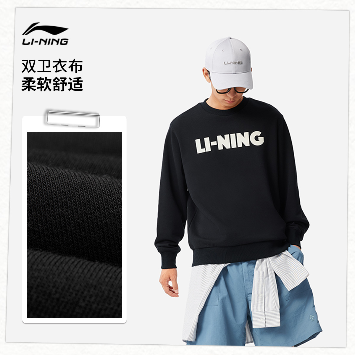 宽松圆领百搭男装 李宁卫衣情侣秋季 长袖 套头衫 针织运动服 2025新款