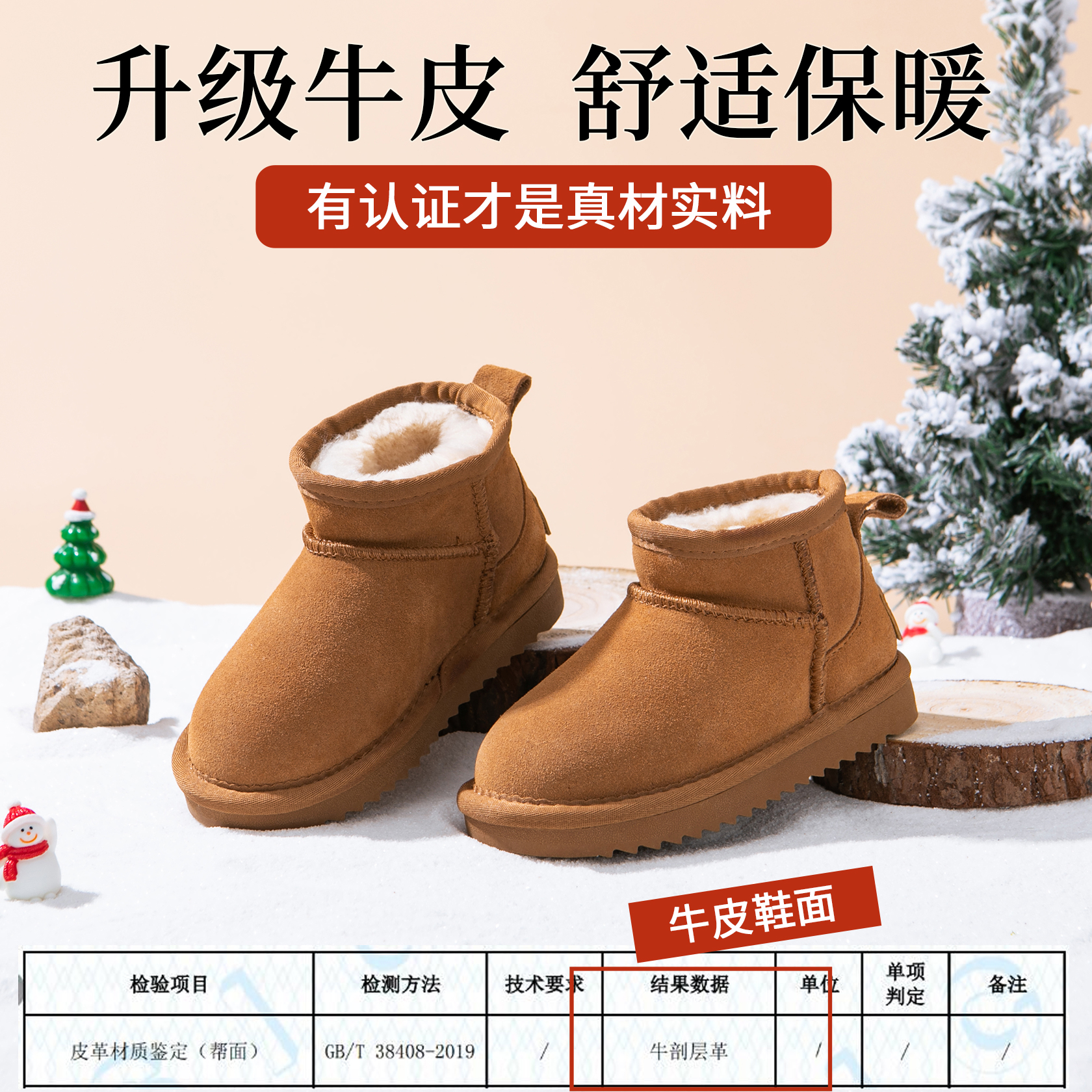 加绒加厚宝宝男童靴子东北 新款 真皮儿童雪地靴女童大棉鞋 2025冬季