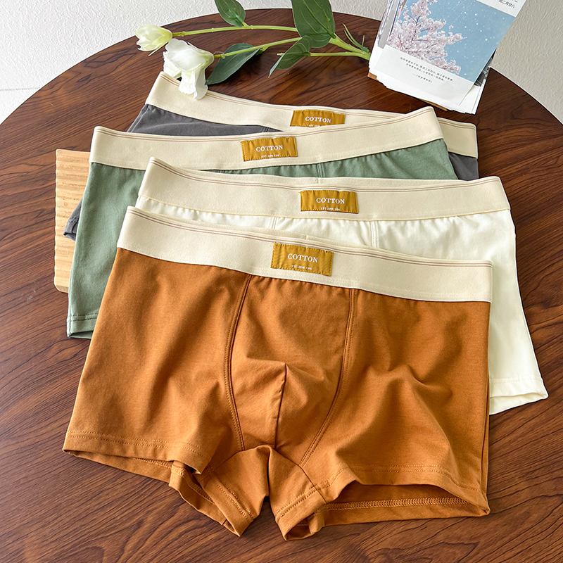 纯棉简约纯色舒适透气抗菌潮流撞色平角四角短裤 男款 内裤 秋冬男士