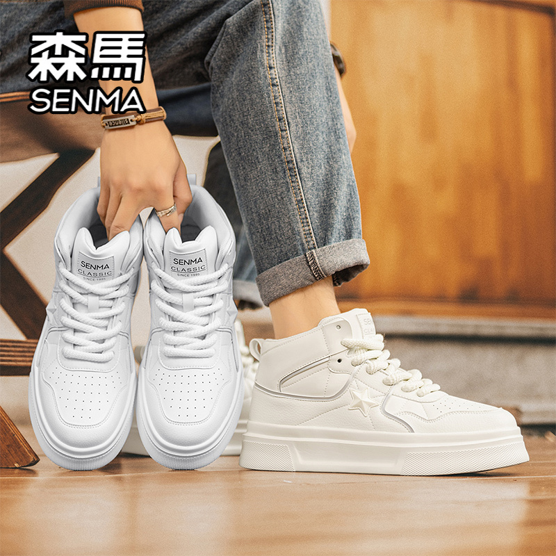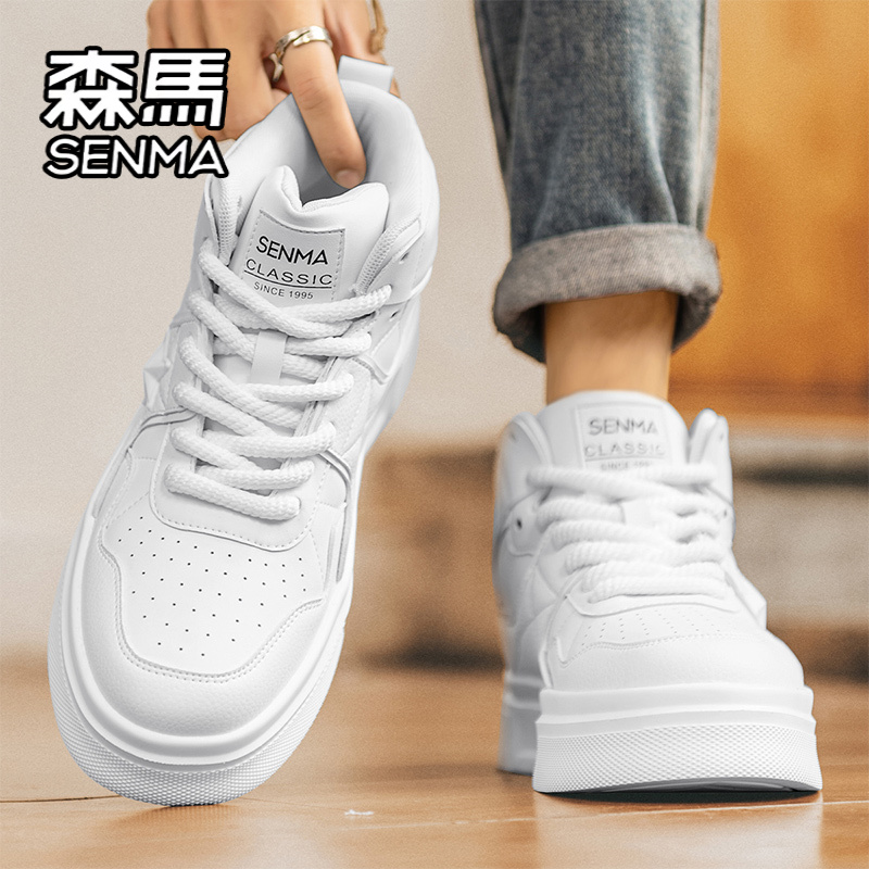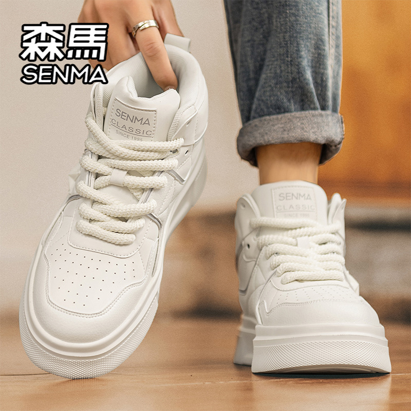 青少年运动休闲厚底真皮小白鞋 百搭空军一号板鞋 秋季 森马高帮男鞋