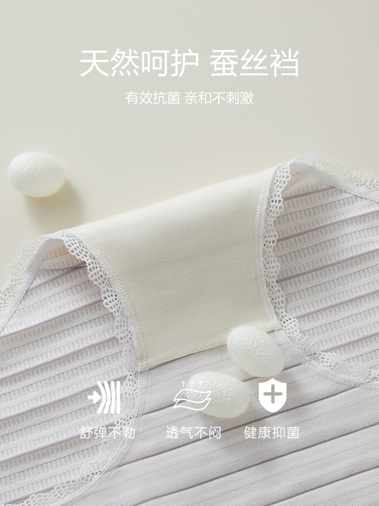 裸感中腰少女生柔软三角裤 7A级抑菌桑蚕丝裆2025新款 纯棉女士内裤