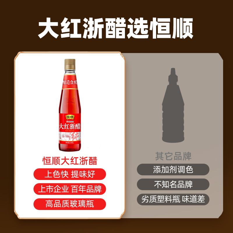恒顺大红浙醋450ml 3四川贵州浙江大醋红食用泡萝卜泡菜专用红醋