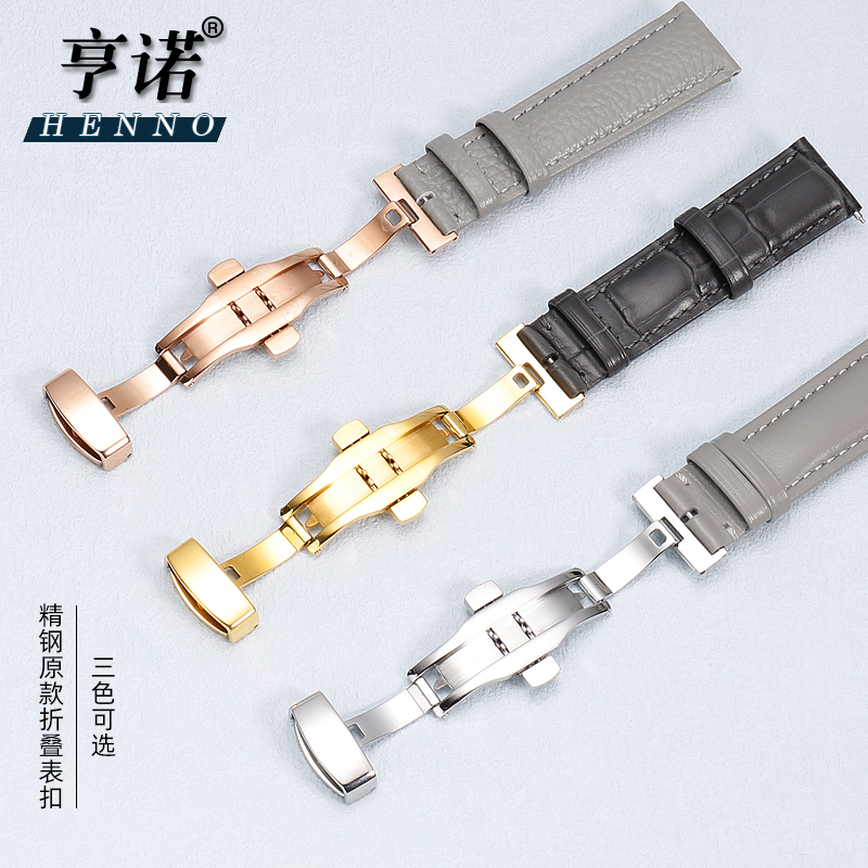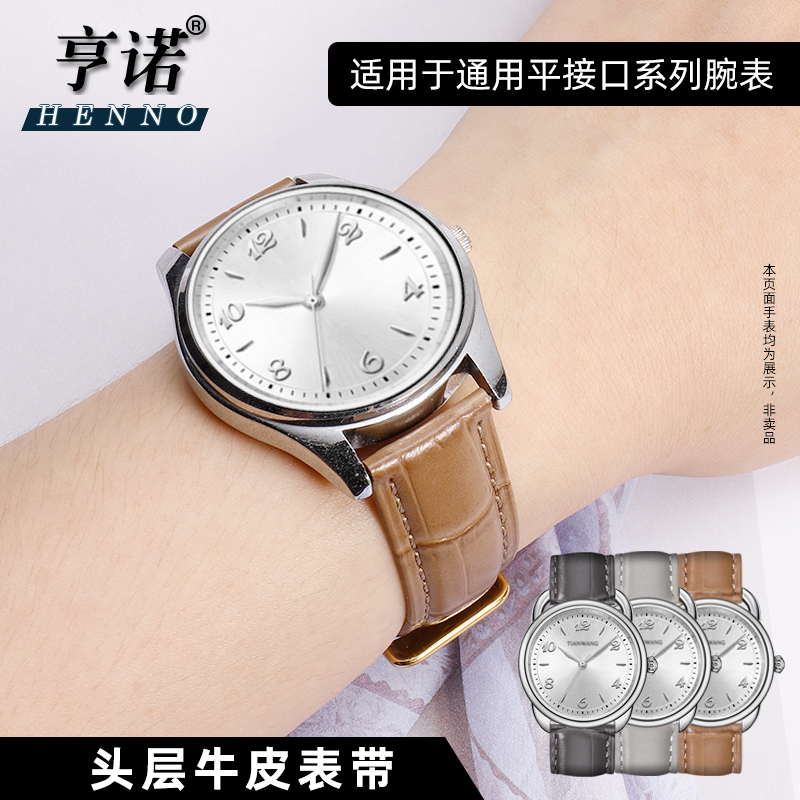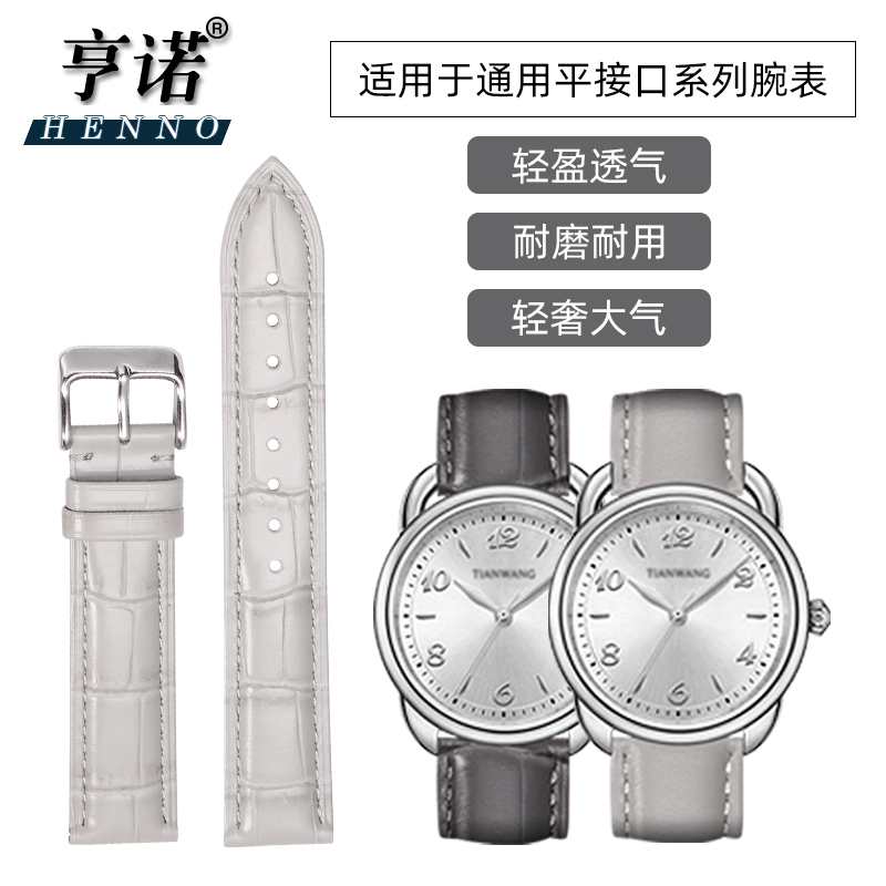 奶奶灰色表带真皮适配天王精工西铁城浪琴典藏卡西欧阿玛尼手表带