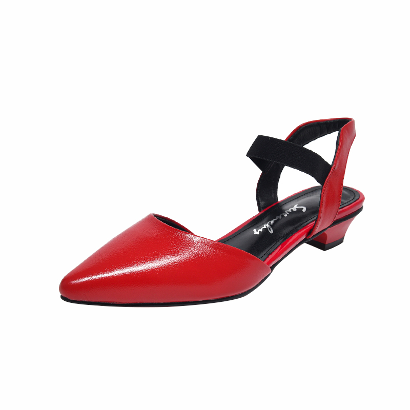 夏季 红色软皮真皮鞋 女鞋 气质低跟单鞋 尖头小跟包头凉鞋 2025年新款