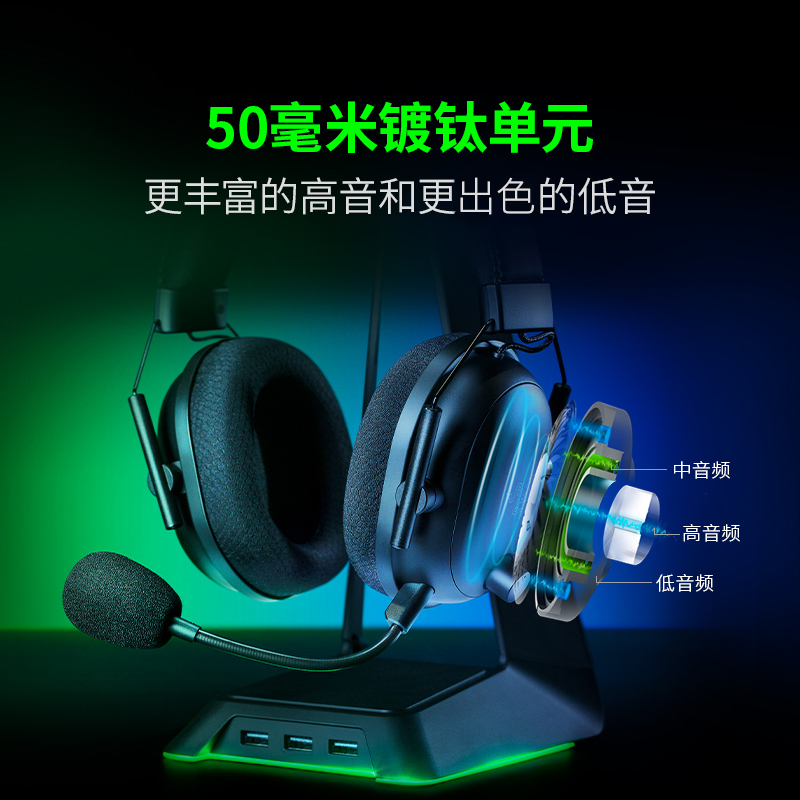 Razer雷蛇旋风黑鲨V2专业版 电竞游戏耳机麦克风 蓝牙USB无线头戴式