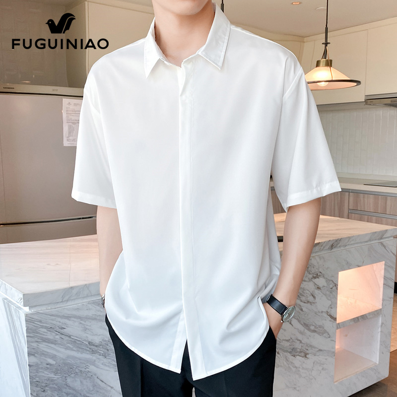 休闲五分半袖 衬衫 2025夏季 新薄款 富贵鸟男士 冰丝衬衣外套男装 短袖