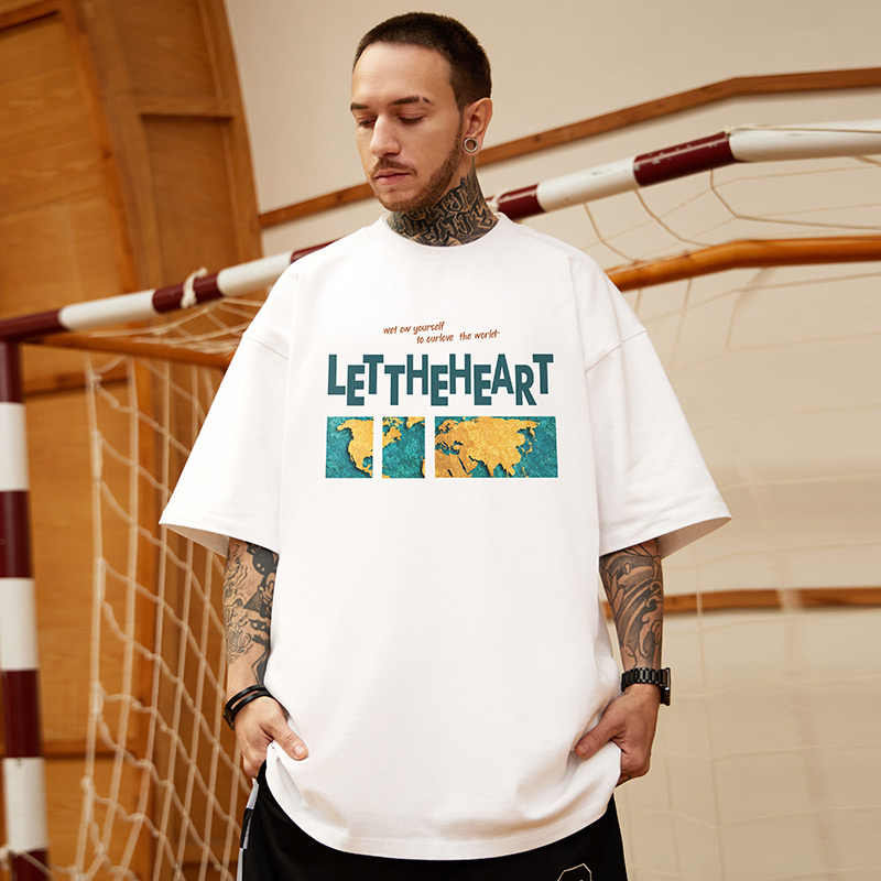 t恤ins潮流男 加肥加大号纯棉半袖 摩严国潮简约绿色宽松短袖 男大码
