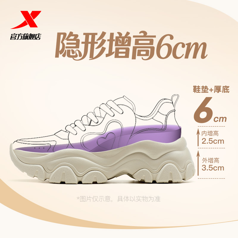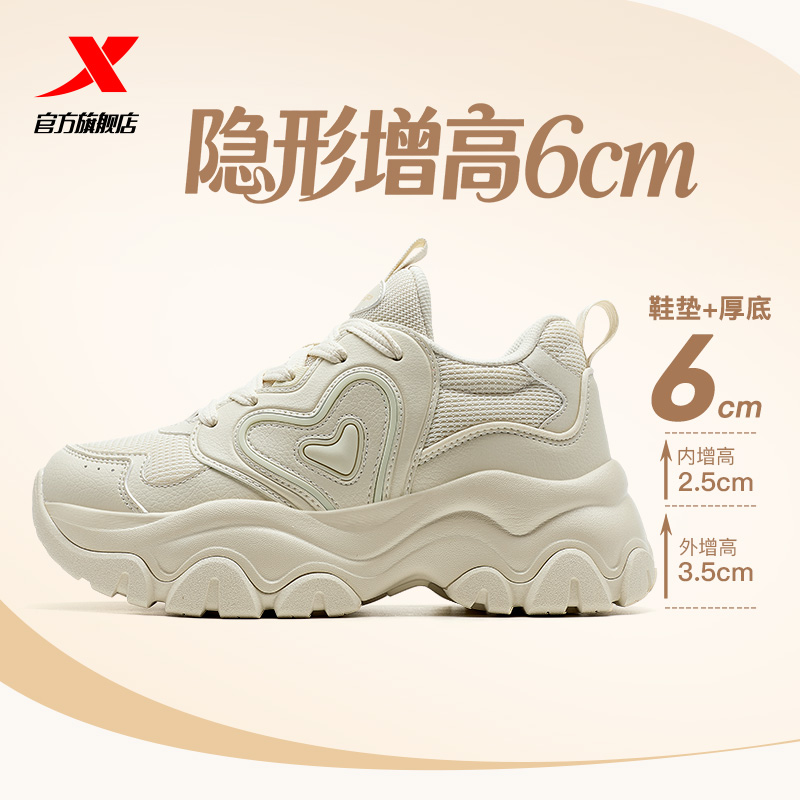 休闲鞋 厚底运动鞋 内增高女鞋 轻便网面透气老爹鞋 男 夏季 特步嗨6鞋