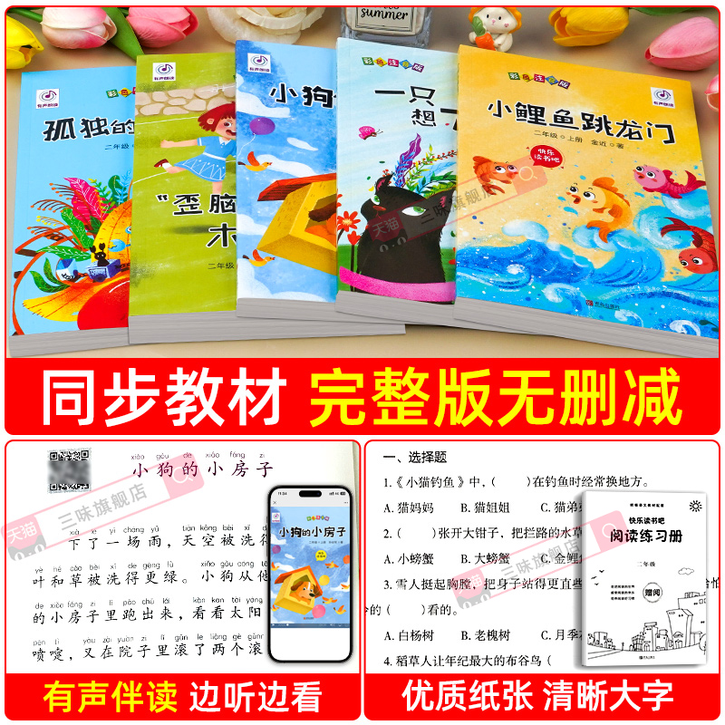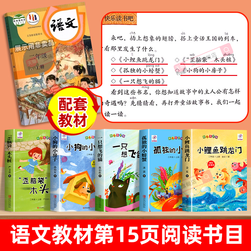 小螃蟹一只想飞 全套5册 快乐读书吧二上阅读书籍孤独 课外书注音版 猫小狗小房子歪脑袋木头桩 小鲤鱼跳龙门二年级上册必读正版