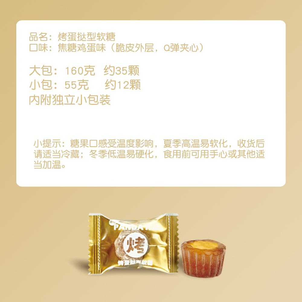 PandaKid熊仔烤蛋挞软糖焦糖鸡蛋味休闲零食夹心啵皮网红爆款 创意