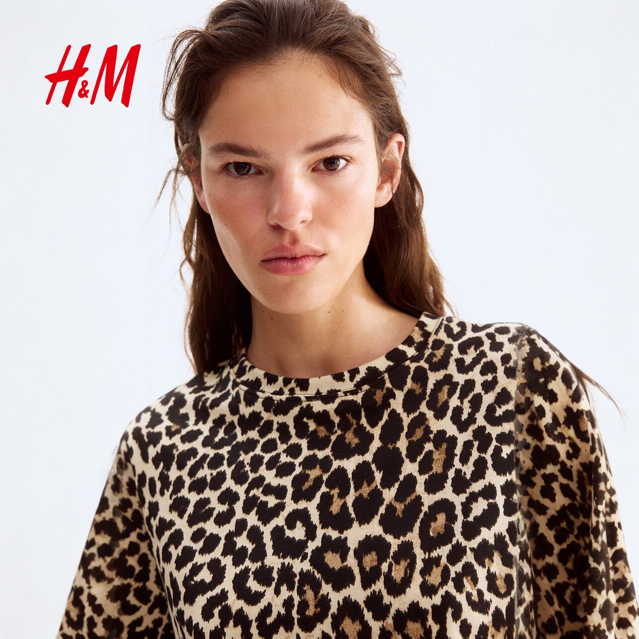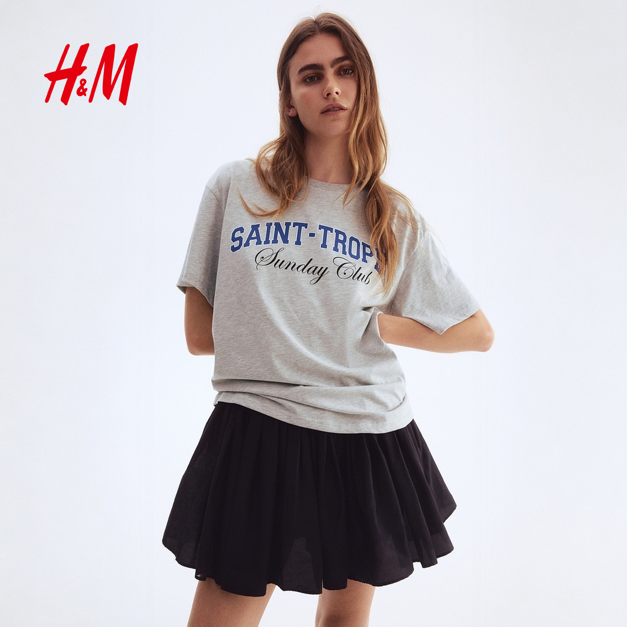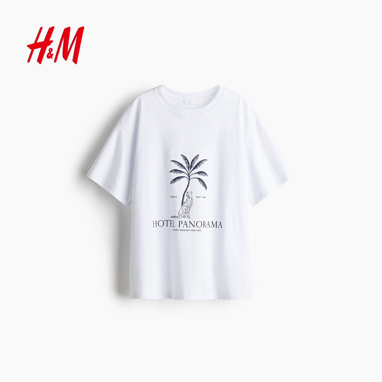 T恤2025夏季 休闲短袖 新款 圆领时尚 上衣1274174 印花宽松美式 HM女装