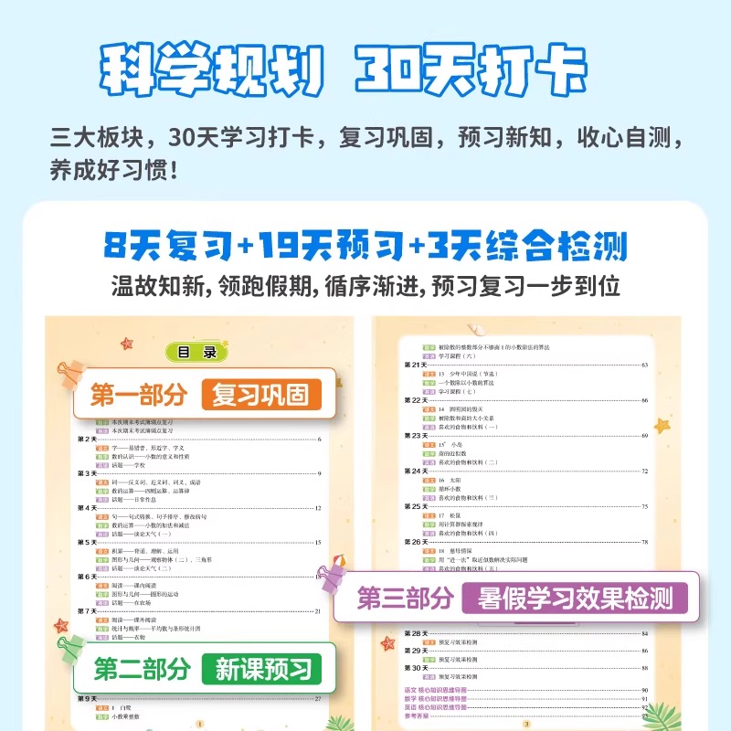 提优练习30天打卡计划阅读口算专项训练 北师版 2025暑假预复习一本通二升三暑假作业二年级下册衔接三合一语文数学英语人教版 苏教版