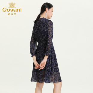 OCHIRLY欧时力 天丝不对称褶饰针织连衣裙收腰长裙2025秋冬新品