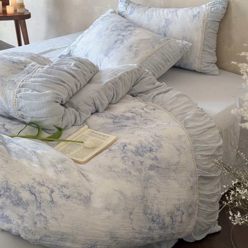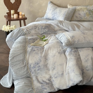 全棉A类双层皱皱纱四件套法式 褶皱花边亲肤春夏床上用品