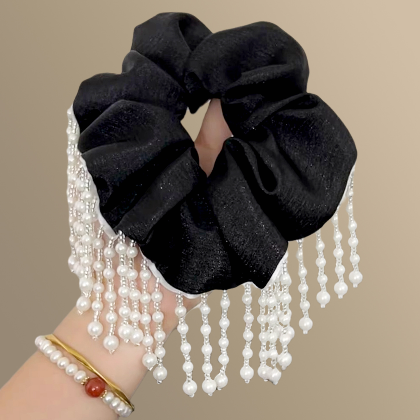 扎马尾头绳高级感旅行发卡 2025新款 晚宴千金 珍珠流苏大肠发圈