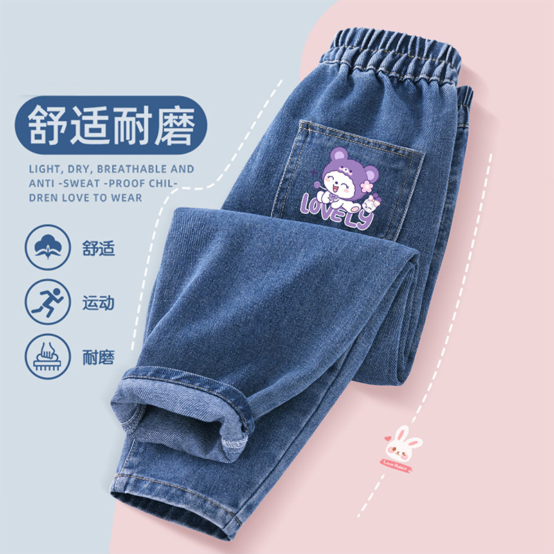 童装 大童休闲裤 宽松牛仔裤 女童萝卜裤 儿童百搭哈伦长裤 女孩春秋季