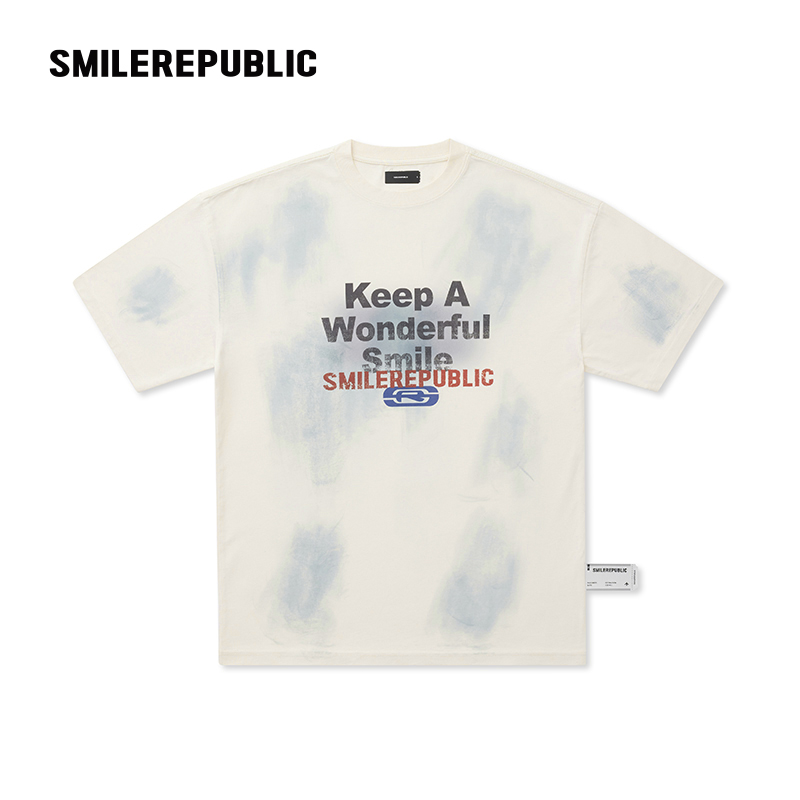 夏季 smilerepublic渐变字母复古水洗做旧印花T恤纯棉时尚 百搭短袖