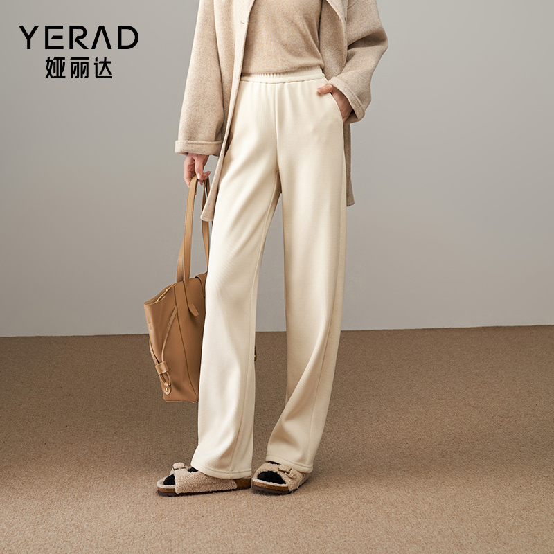 高级宽松bf慵懒垂感直筒加绒休闲阔腿裤 2025新款 子女春秋季 糯米裤