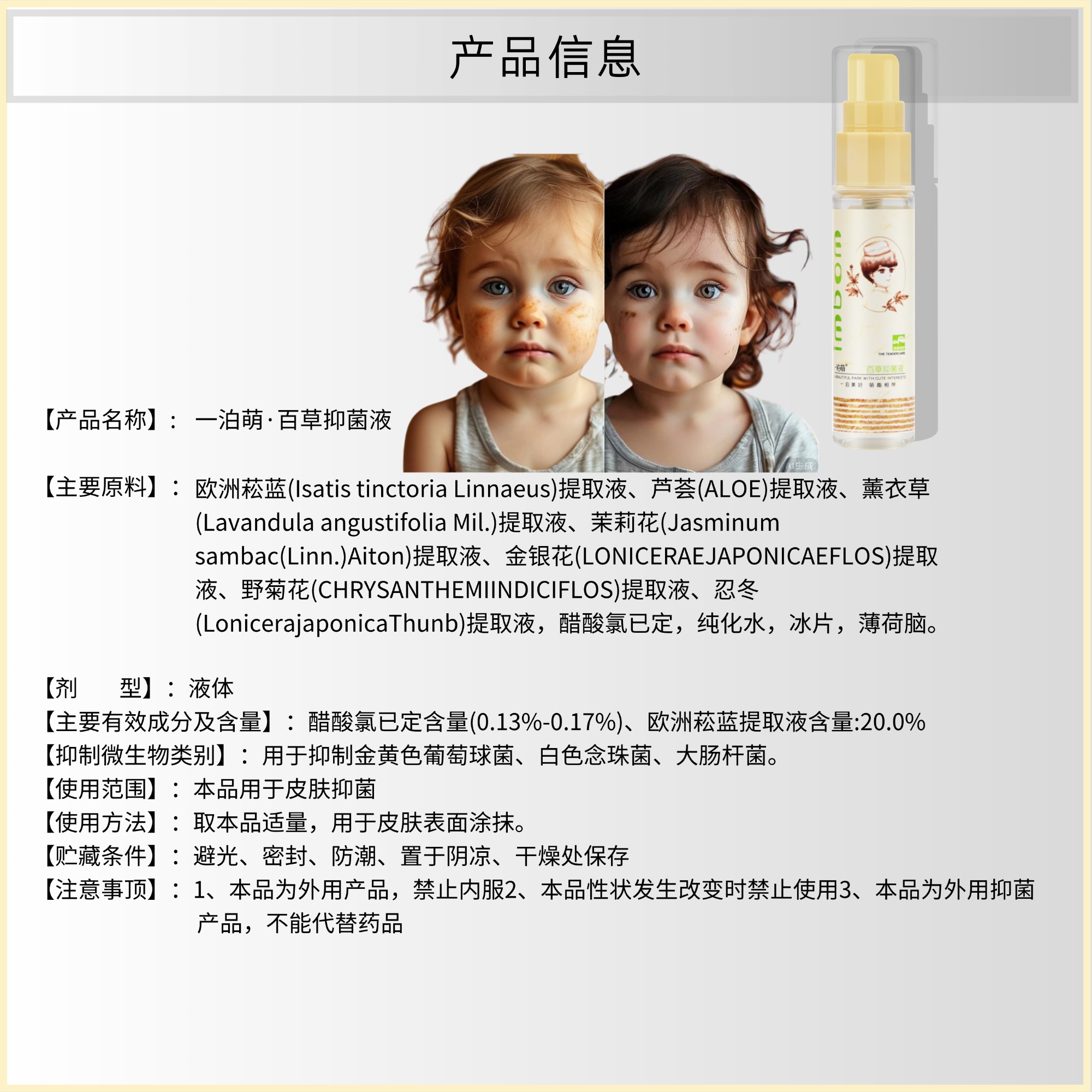 一泊萌 百草抑菌液35ml红pp护臀膏草本凝胶抑菌液皮肤抑菌 官方
