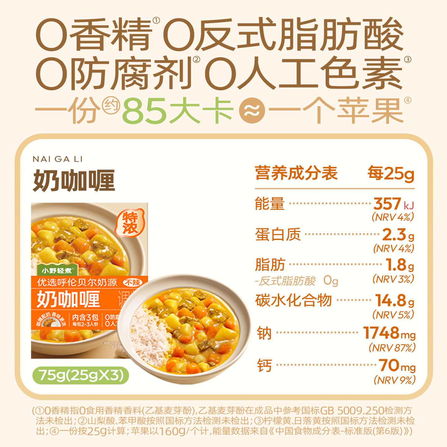 小野轻煮奶咖喱儿童咖喱粉奶香咖喱料理包调味家用咖喱炒饭旗舰店