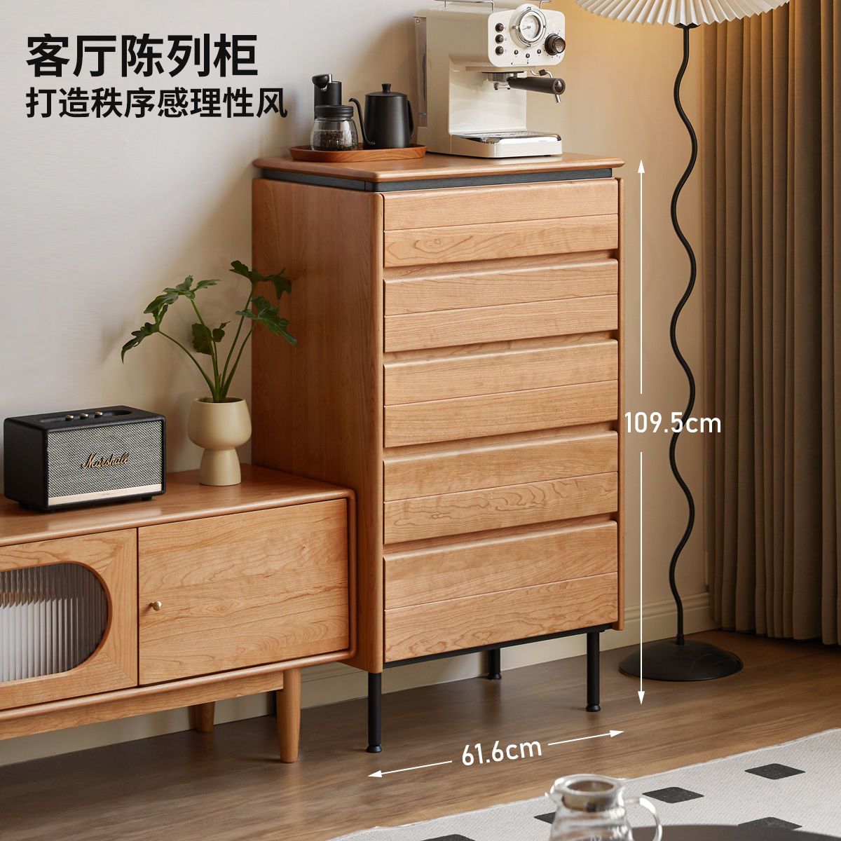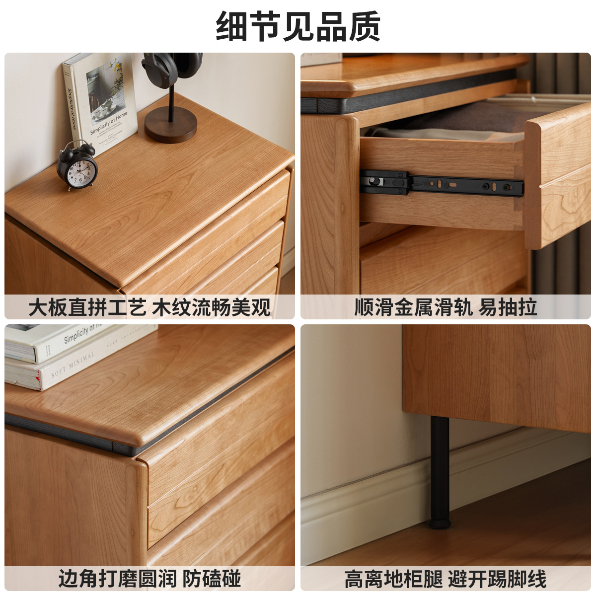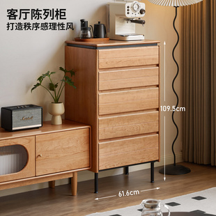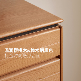 源氏木语实木斗柜卧室床边抽屉柜复古樱桃木储物柜家用靠墙收纳柜