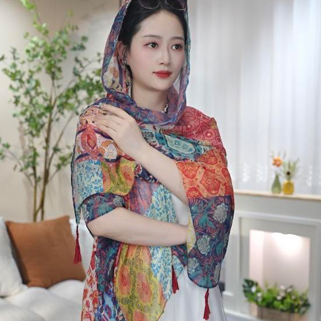 海边沙滩斗篷丝巾女 空调房夏季 薄款 旅游防晒大披肩外搭女2025新款