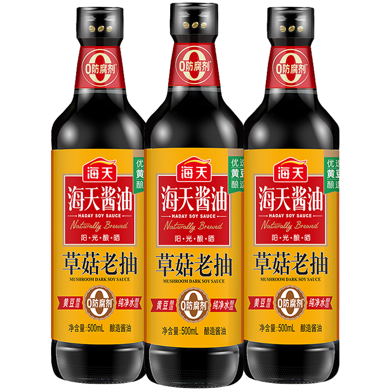 海天草菇老抽500ml瓶装 黄豆酿造酱油炖肉红烧上色红亮0添加防腐剂