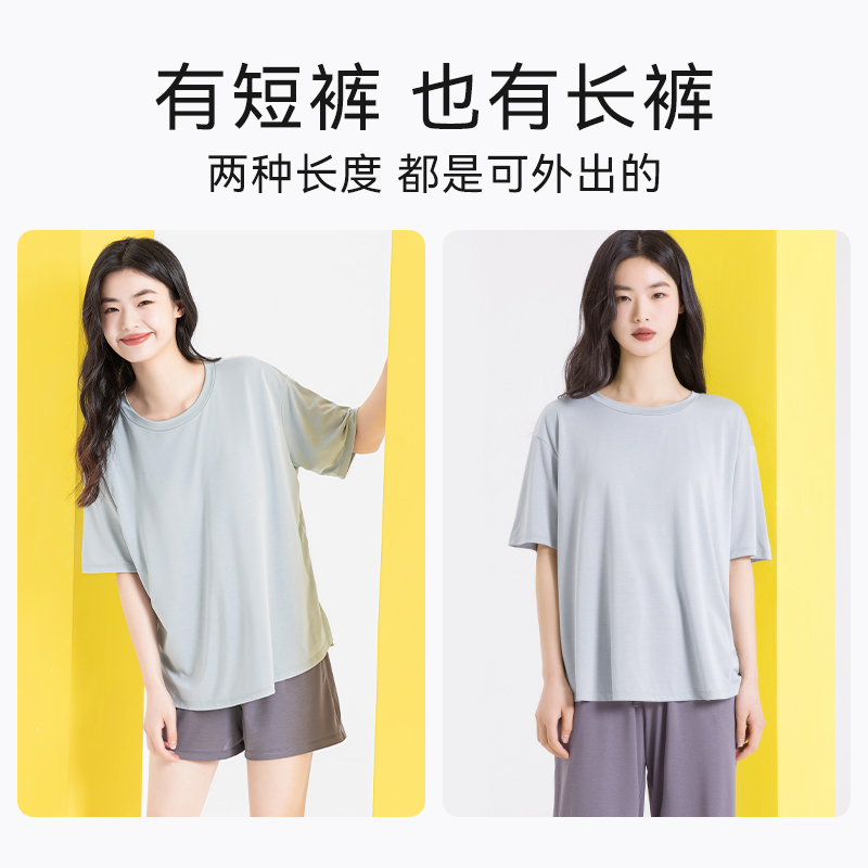 可外穿冰丝宽松休闲家居裤 凉感薄九分裤 子 女夏居家长裤 莫代尔睡裤