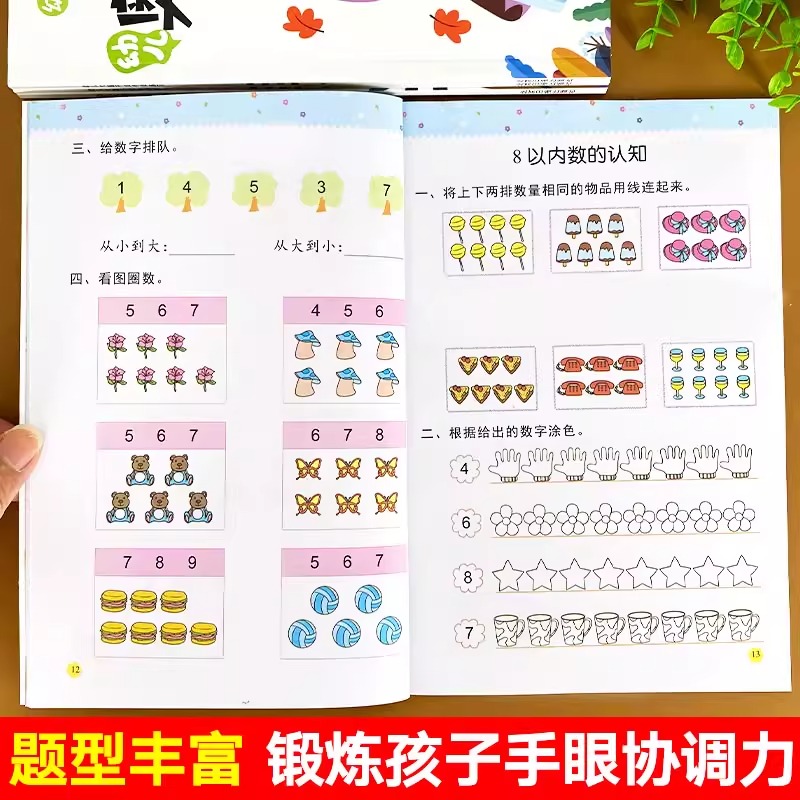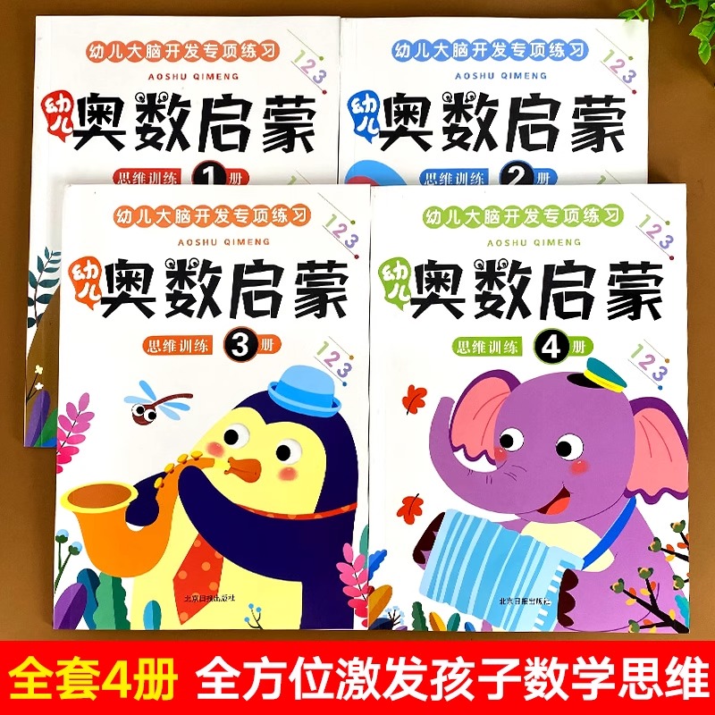 全套4册 幼儿园儿童小班大班学前班趣味练习题蒙氏绘本书籍幼小衔接一日一练教材用书 中班幼儿练习册数学启蒙早教书奥数思维训练