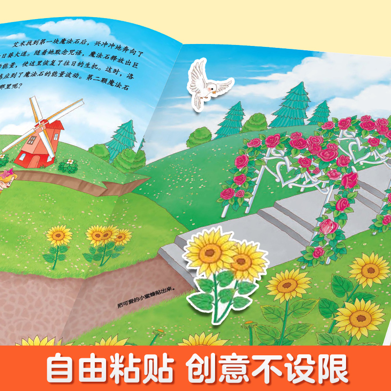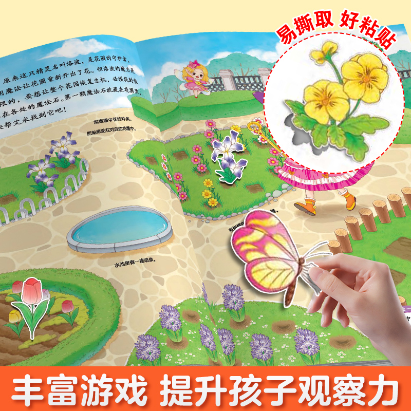 儿童左右脑开发贴纸益智游戏玩具书 花园 宝宝智力开发 动手动脑玩贴纸女巫 爱德少儿
