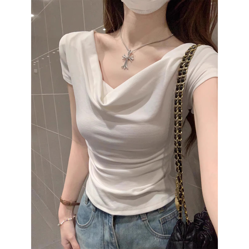 修身 打底衫 百搭上衣服 T恤女春秋内搭短款 设计感小众正肩纯棉长袖